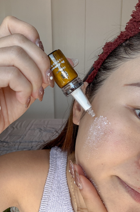 它的粉末是採用冷凍乾燥包覆技術,把高效靈芝成分完整鎖住,每次用前混入化妝水或精華液裡,就像現開的美容能量瓶一樣💧