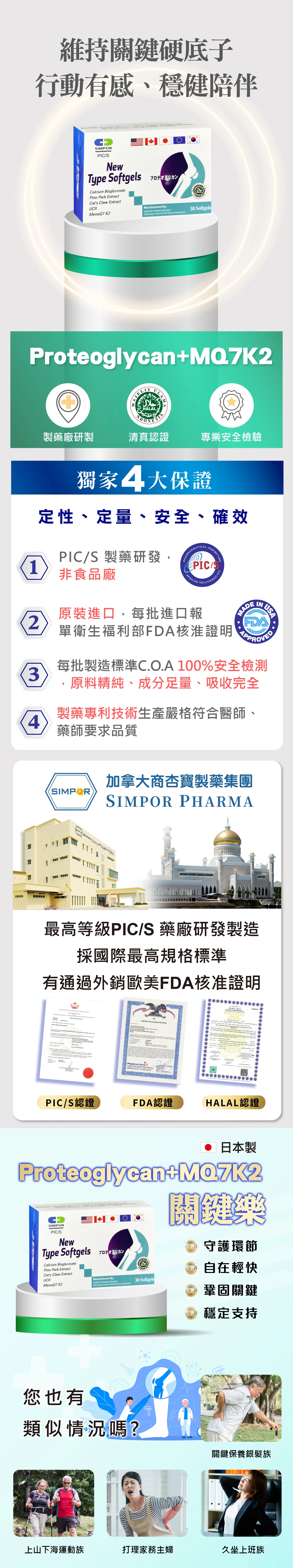 成分好處: 透過科學比例的植物與營養萃取,能為日常活動提供穩固的支撐力,讓您在運動或行走時更加自在舒適、健康維持。